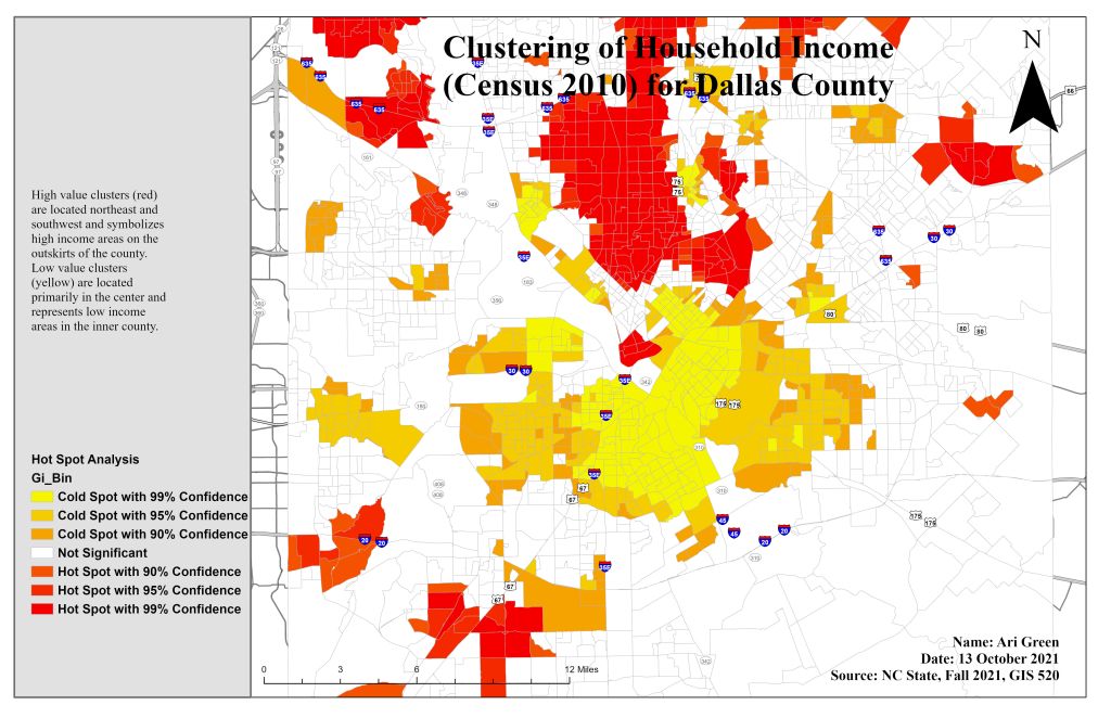 Dallas County has hired me, a GIS analyst, to perform a cluster and outlier analysis to determine if there are any relationships between incidents and the median household income in a specific census block group. The goal is to locate hot and cold spots of the census data.