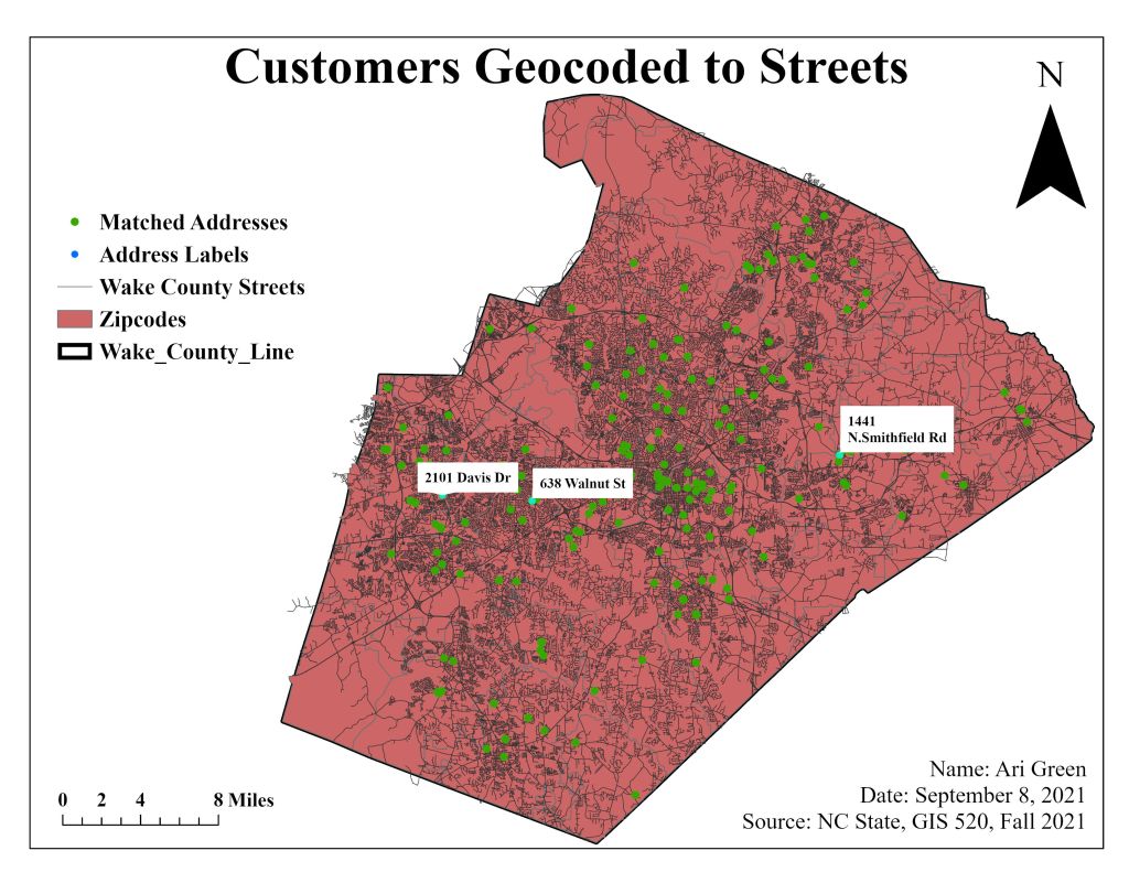 A commercial business in Wake County is looking to attract more customers to sustain and maintain business growth. To do so, their marketing department has developed a plan to evaluate and determine how to find their new customer base. The commercial business will need to spatially analyze the areas of current customers and highlight potential new areas where customers can become new customers. With that being said, the objective of this assignment is to locate where the company’s current customers are and display the data visually for spatial reference.